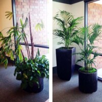 Below are a few “Before & After” photos of our interior plant arrangements.